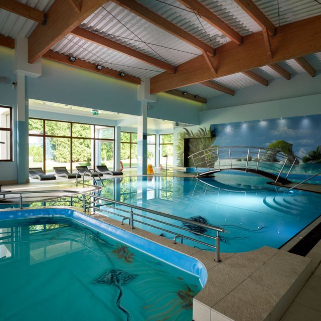 - Entspannung im Hallenbadkomplex (12,5 m Schwimmbahn, Freizeitbecken, Rutsche, separates Kinderplanschbecken, Whirlpool)
